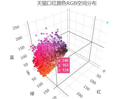 钻研的第一步是将天猫40000个唇彩SKU的产品图片提与出来,依据图片中的嘴唇位置去提与颜涩,最后可以获得一个每个口红SKU的RGB数据。