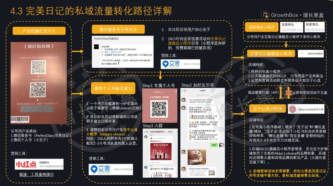 · 产品附赠的口令红包卡片——小完子个人号——完子心选小步调(美妆攻略+商城+曲播)——小完子玩美钻研所微信群;